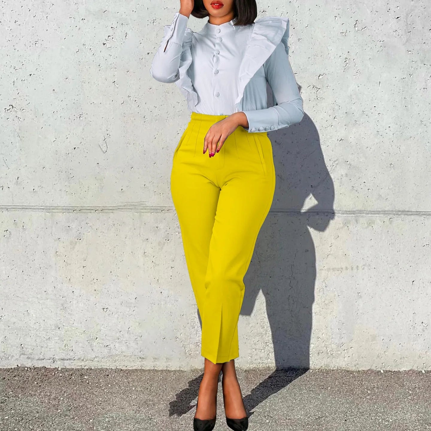 Elegant High Waisted Straight Ankle Length